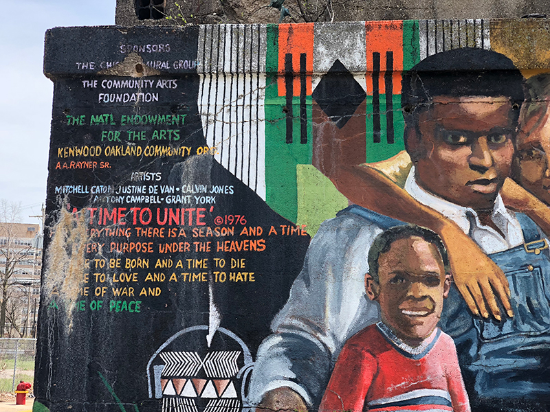 The beautiful and amazing Mural seen above and below is actually located just one block South of the new location at 4025 S. Drexel in Chicago...it was an unexpected find but just reinforced the fact that we are headed in the right direction. A Time To Unite. Artist info can be seen below.